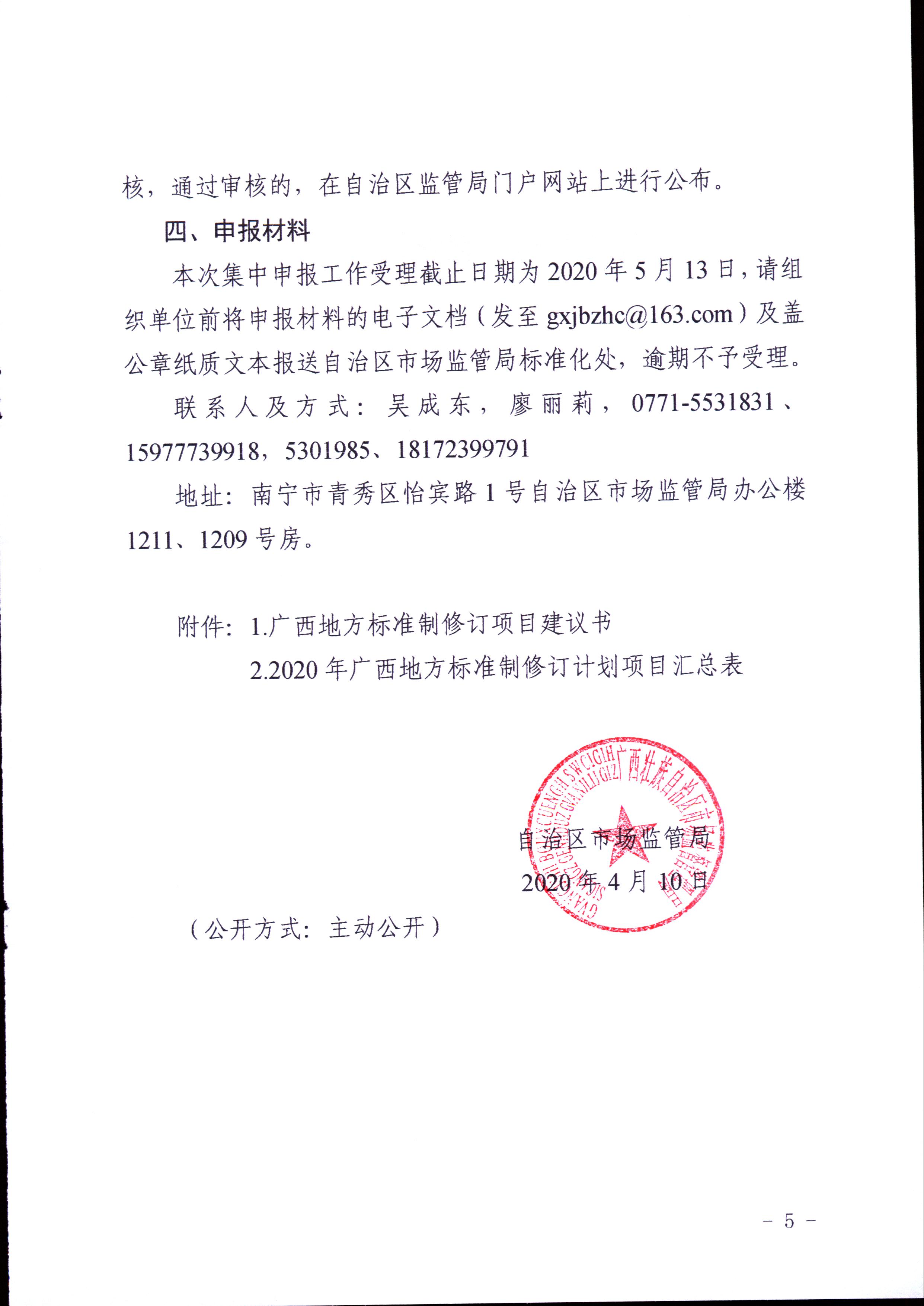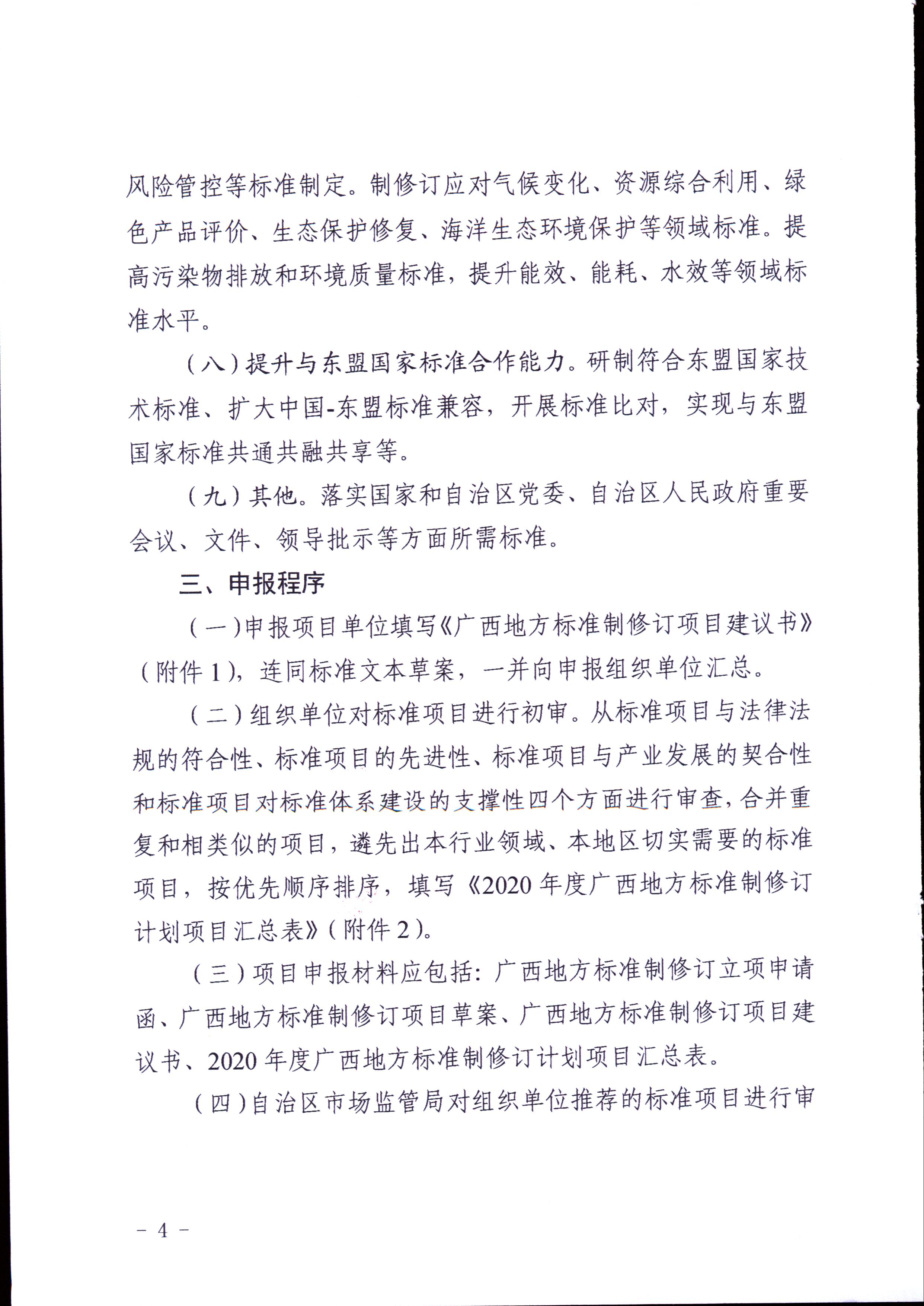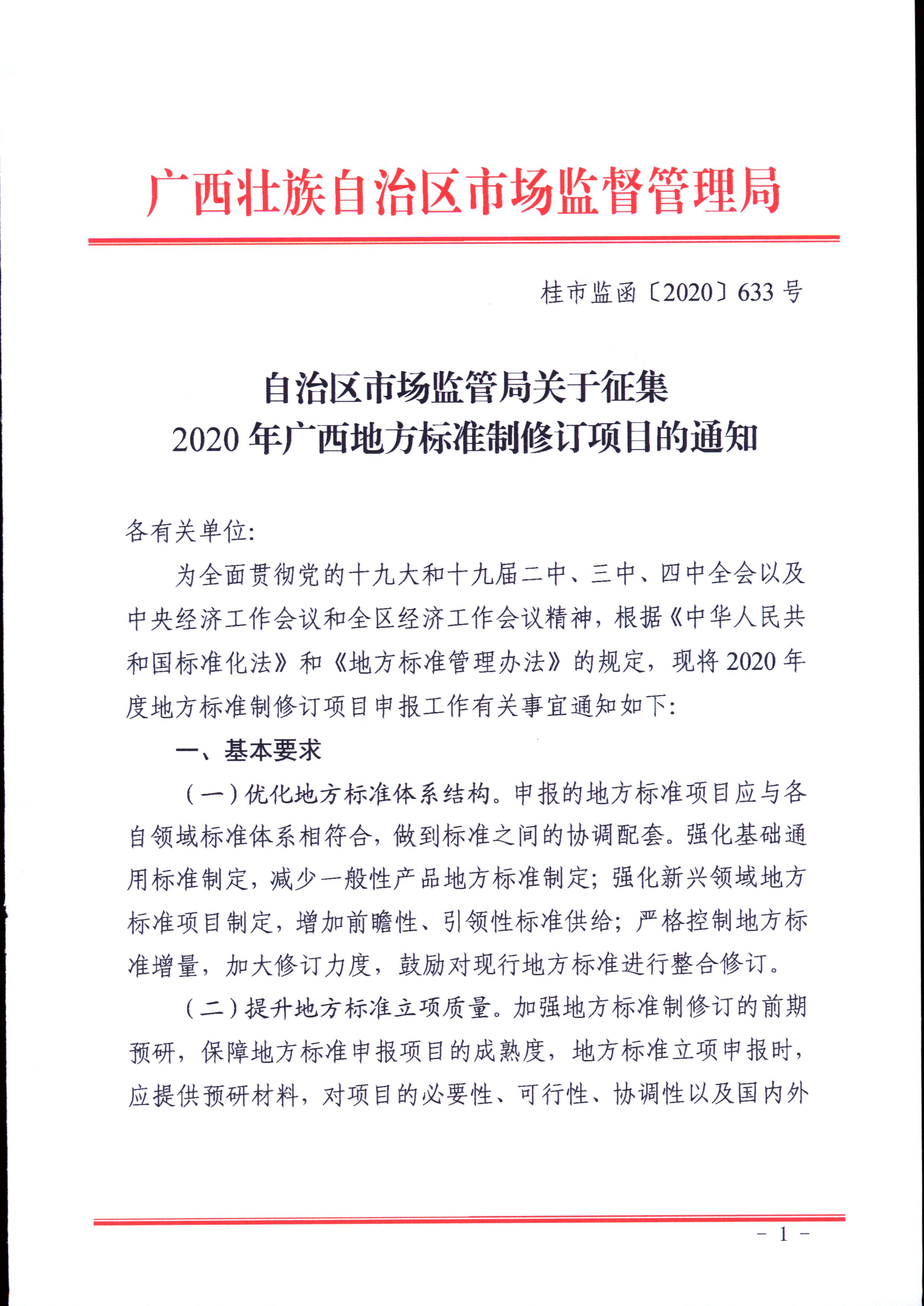 自治區(qū)市場監(jiān)管局關(guān)于征集2020年廣西地方標準制修訂項目的通知